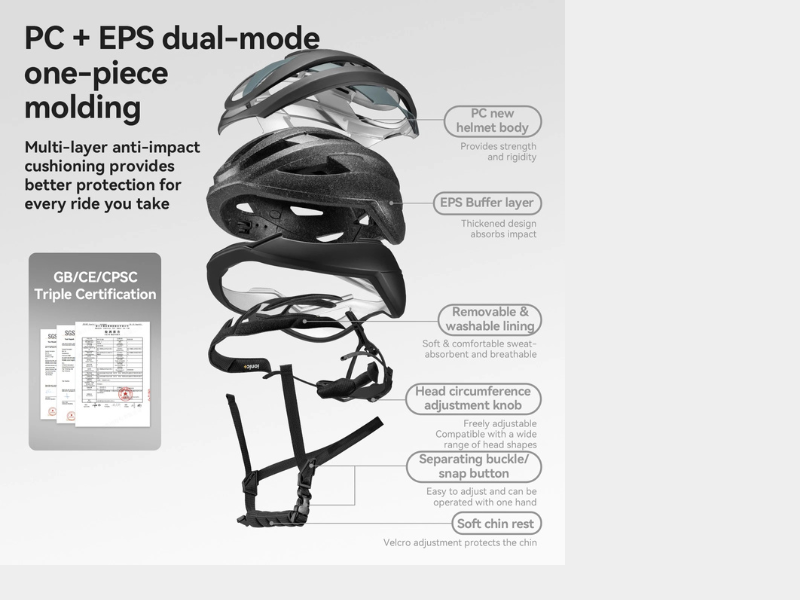 مقاومت در برابر ضربه: این کلاه دوچرخه مردانه و زنانه از پوسته PC با چگالی بالا و فوم EPS ساخته شده است. پوسته بادوام می تواند به طور موثری از سر شما محافظت کند و آستر نرم می تواند نقش ضربه گیر و بالش را ایفا کند، هر دو می توانند ایمنی دوچرخه سواری را بهبود بخشند.
